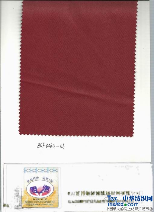 我公司采用阻燃劑單體與聚酯單體共聚生成改性阻燃聚酯切片,再經(jīng)紡絲、紡紗、織造等工藝生產(chǎn)出磷系永久阻燃滌綸機(jī)織或針織織物,其阻燃性能達(dá)到國(guó)家GB20286-2006“阻燃1級(jí)”標(biāo)準(zhǔn)。產(chǎn)品阻燃性永久不丟失,且染色性能良好,燃燒時(shí)低煙無(wú)毒,屬于不含鹵素的環(huán)保型阻燃織物,與普通織物一樣手感柔軟,美觀,有較好的抗靜電性。