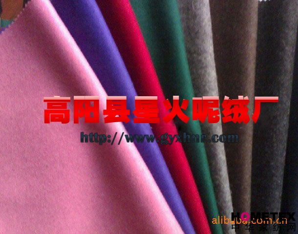【克 重】340-370g根據(jù)客人不同用途,選擇克重。 【顏 色】根據(jù)客人要求,各種顏色均可,可以訂織訂染 【成 份】毛粘混紡,毛/化纖混紡,毛/滌混紡的面料 【幅 寬】150cm-195cm 【手 感】柔滑、輕柔、舒適,手感細膩 【用 途】各類服裝|服飾|成衣|裝飾品|鞋帽|女裝|男裝|男式西裝|童裝|時尚大衣|褲子|外套|制服等 【包裝說明】內(nèi)層塑料袋/外層塑料編織袋|紙箱 【網(wǎng) 址】WWW.gyxhnr.COM 高陽縣星火呢絨廠主要專業(yè)生產(chǎn)粗紡呢絨、法蘭絨、人字呢、格子呢、麥爾登、順毛呢、港花呢、立絨、羊絨呢、圈圈呢等各種流行時尚面料,能夠針對不同的客戶、不同的來樣規(guī)格、不同的質(zhì)量要求,及時地開發(fā)出相應(yīng)產(chǎn)品,滿足客戶個性化的需求,生產(chǎn)工藝先進,原料講究、生產(chǎn)管理嚴格.我廠產(chǎn)品質(zhì)量可靠,定單交期及時,獲得外貿(mào)公司的普遍認可。