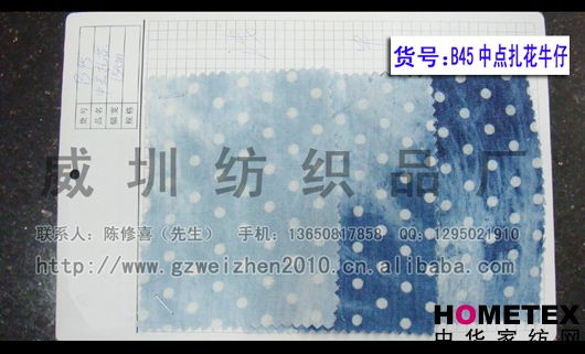 中點(diǎn)扎花牛仔面料 洗水牛仔面料 工藝印花(圖)