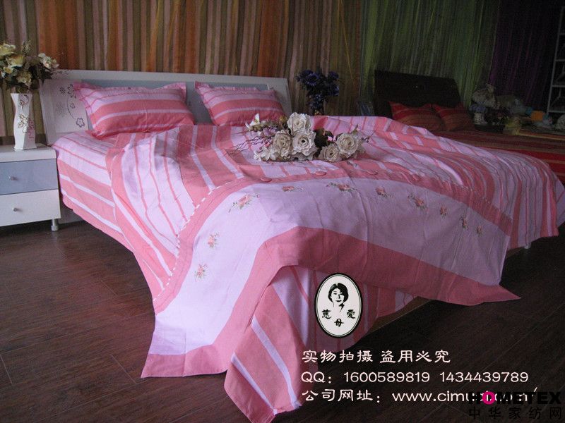 慈母愛”牌老粗布床品有著其他床品不可比擬的優(yōu)越性: (一)、綠色天然、環(huán)保健康、主要原料是100%純棉線制成,從種植到手織布制品,不使用農(nóng)藥和化學(xué)染劑,紡織品不含甲醛,偶氮等化學(xué)重金屬離子,完全符合歐共體紡織品生化標(biāo)準(zhǔn)規(guī)定:“禁用致癌偶氮染料的要求”,是真正的綠色生態(tài)紡織珍品。 (二)、冬暖夏涼、透氣吸汗 柔軟舒適,透氣吸汗,適用于貼身使用;吸附人體皮膚上的汗水和微汗,使體溫迅速恢復(fù)正常。 (三)、抗靜電、防螨止癢,親合肌膚,有人類“第二肌膚”之稱。PH值呈酸性,對皮膚無刺激;符合環(huán)保及健康要求。 (四)、線粗紋深,質(zhì)地厚重,不卷邊 不褪色、不易搓起、不起球(純棉縫制,不帶自由電荷,棉纖維不易變形)不卷邊,由于粗布線粗、紋深,其表面形 成無數(shù)個按摩點(diǎn)對人體有意想不到的按摩作用。 (五)、綠色保健、改善睡眠, 使用老粗布使人體產(chǎn)生溫?zé)嵝?yīng),特別是彩棉的紅外線作用于人體,增加人體的微循環(huán)血流,激活組織細(xì)胞,有效的調(diào)節(jié)神經(jīng)系統(tǒng),疏通經(jīng)絡(luò),改善睡眠質(zhì)量.融自然、和諧、綠色、環(huán)保、健康于一體,是現(xiàn)代人返樸歸真、回歸自然的時尚佳品.