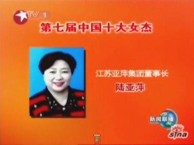 陸亞萍獲中國(guó)十大女杰榮譽(yù)稱號(hào)