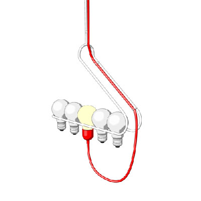 這是一款非常搞怪的吊燈。它雖然也是將燈泡插在燈座里面來(lái)接通電源的,但是與傳統(tǒng)產(chǎn)品不同的是,這款吊燈增加了一個(gè)燈泡架?梢蕴崆皩溆玫臒襞菀徊⒎旁诩茏由,一旦其中一個(gè)燈泡壞了,就可以馬上切換到其他的燈泡,而不必翻箱倒柜的去尋找備用燈泡了!