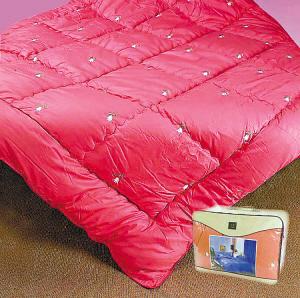 羽絨被的主要填充物是鵝絨和鴨絨兩種兩者相比較,鵝絨被要比鴨絨的好一些。但不管哪種羽絨被,其主要質量指標為含絨量。一般來講,含絨50%以上的為優(yōu)質羽絨被。